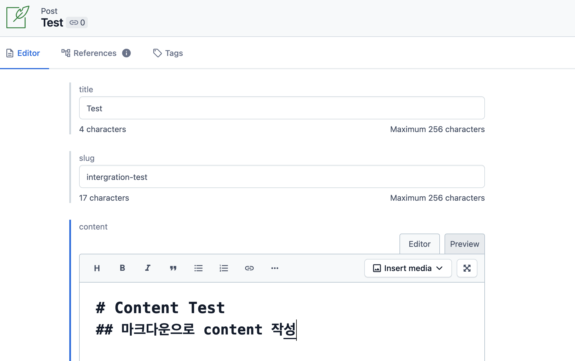 - content (마크다운 문법으로 작성 될 포스트 내용)