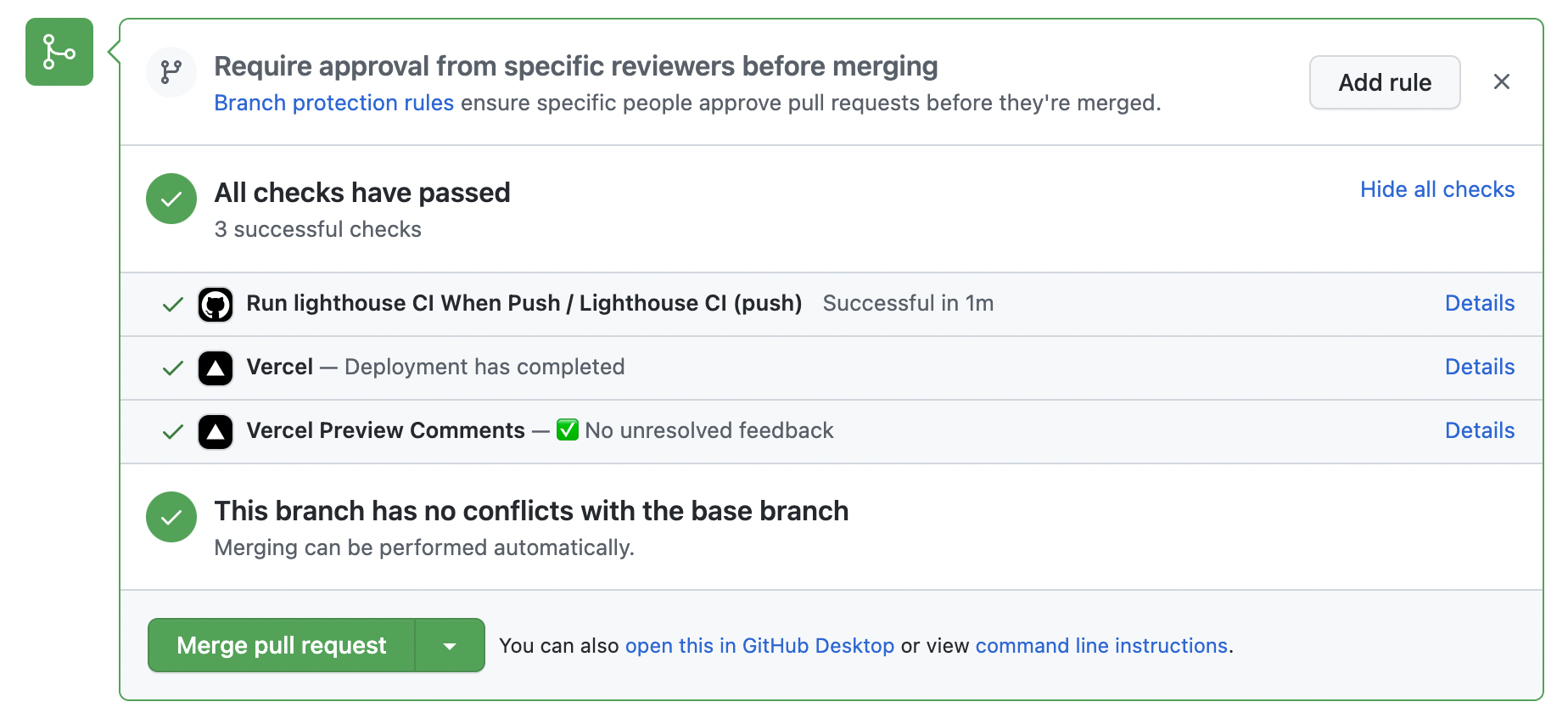 이 Lighthouse를 CI 단계에서 연동할 수 있는데 라이브러리가 Lighthouse CI입니다. 여러 CI와 연동할 수 있는데 이번 포스팅에서는 Github Actions와 연동하여 PR단계에서 웹 성능을 측정할 수 있도록 설정해보겠습니다. 프로젝트는 Next.js 기반으로 진행하겠습니다.
