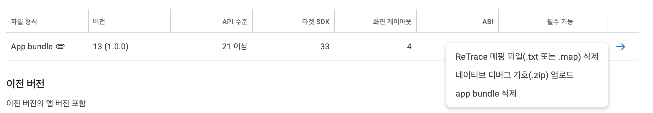3. 해당 파일을 플레이스토어에 네이티브 디버그 기호(.zip) 업로드