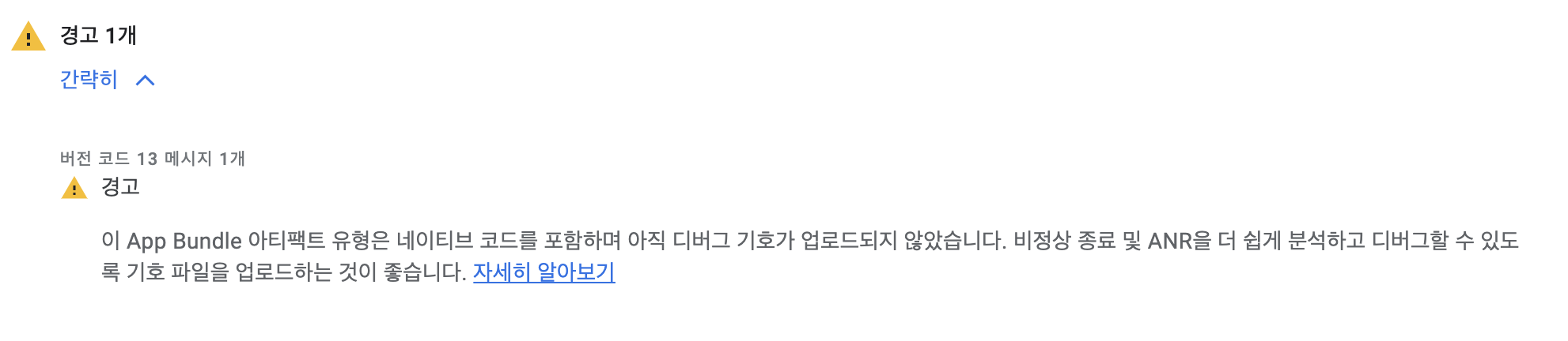 플레이스토어에 앱 업데이트를 할려고 번들 파일을 업로드 했더니 다음과 같은 경고 메세지가 발생한다.