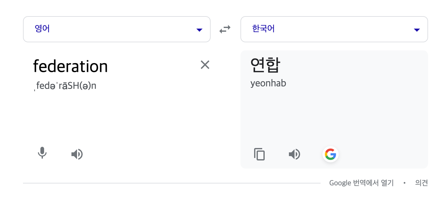 필자는 어떠한 개념에 대해 익히기 전에 단어의 사전적 개념에 대해 먼저 알아보는편이다. 단어의 뜻만 파악하면 반은 먹고 들어간다고 생각하기 때문이다. Module Federation ? Module을 Federation하겠다는 의미인데 Federation의 뜻을 찾아보면 '연합'이라고 설명해준다. 복수의 Module들을 연합, 한마디로 런타임에 통합시켜준다는 의미이다.