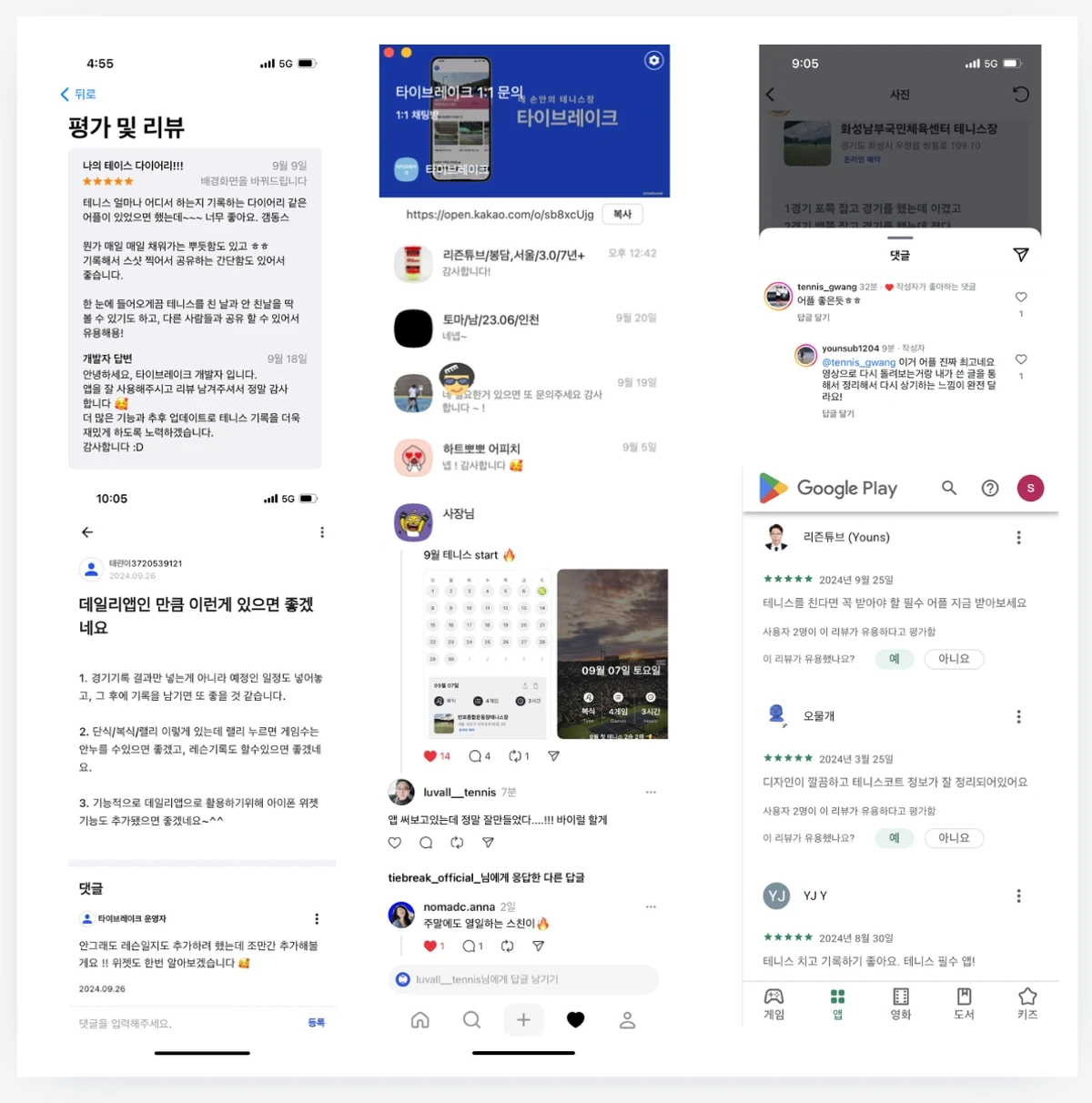 개발/디자인/마케팅/운영, 어느것 하나 쉬운게 없음에도 지속적으로 작업을 할 수 있는 원동력은 앱을 사용해주시는 유저분들 덕분이었던 것 같습니다. 게다가 테니스는 제가 제일 좋아하는 도메인이기도 합니다. 🥰 확실히 사이드 프로젝트는 본인이 좋아하는 분야에서 조금이나마 원동력이 생기는 것 같아요.