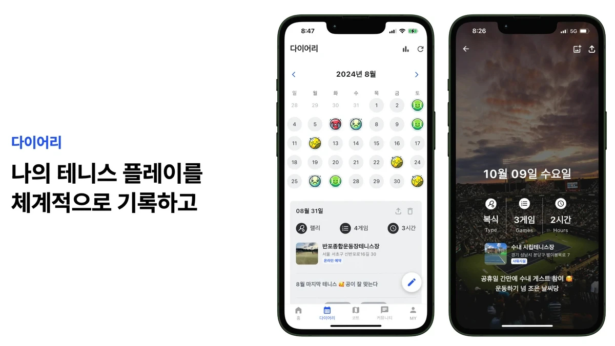 테니스를 치는 많은 분들이 SNS, 주로 인스타그램을 통해 자신의 플레이를 공유하고 있습니다. 저 또한 그날의 플레이와 날씨, 컨디션 등을 스토리를 통해 자주 공유를 했는데요, 한 가지 아쉬운점이 있다면 SNS 공유가 기록보다는 단편적인 소모에 그친다는 부분이었습니다.