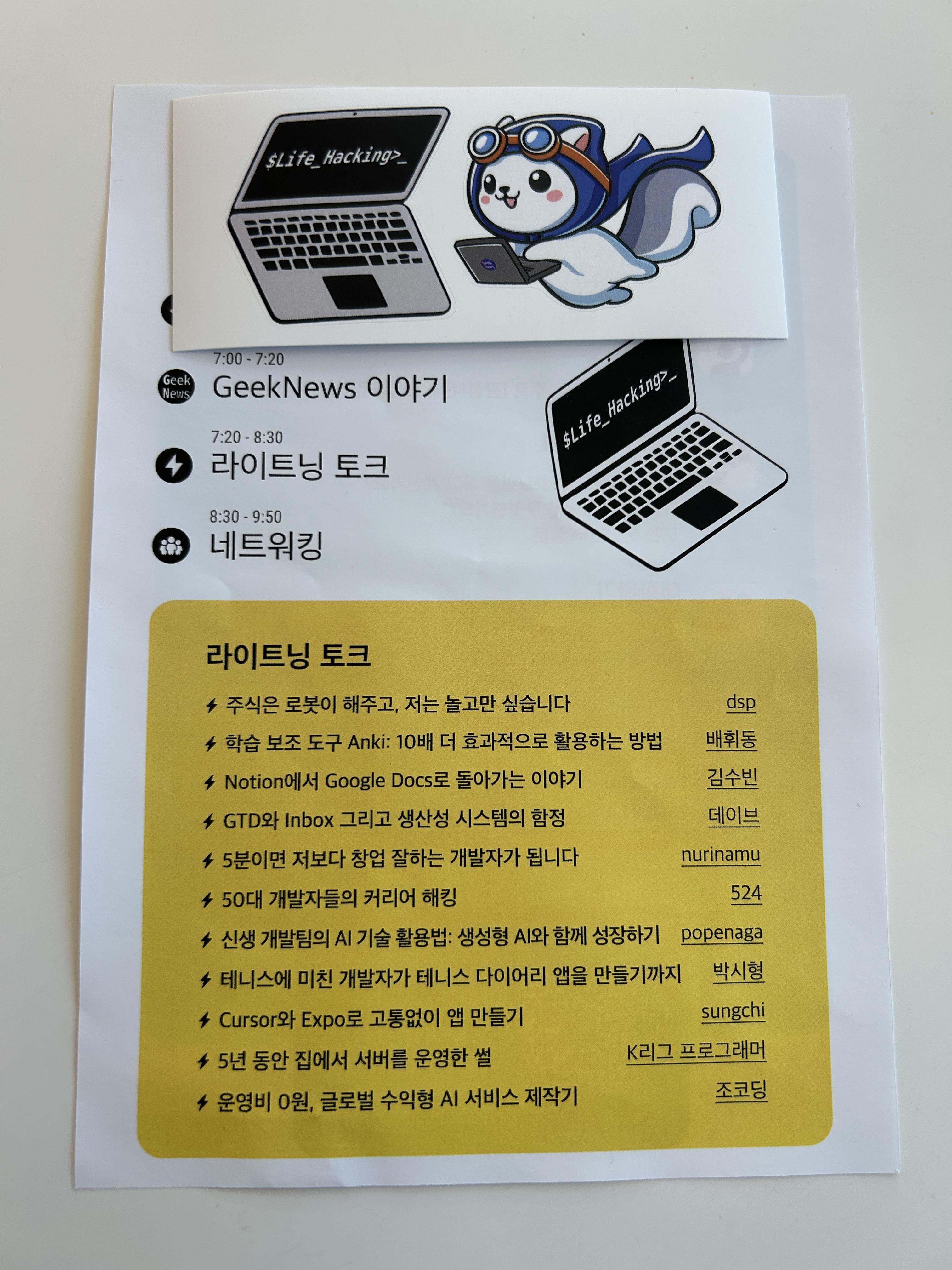 여느날처럼 출근 후 Geek News를 둘러보고 있는데 Geek News의 오프라인 밋업 행사 소식이 올라왔습니다. 매일 아침 인사이트를 얻는 커뮤니티에서 첫 오프라인 행사를 열어 관심이 갔는데, 라이트닝 토크 발표자도 모집을 하고 있었습니다.