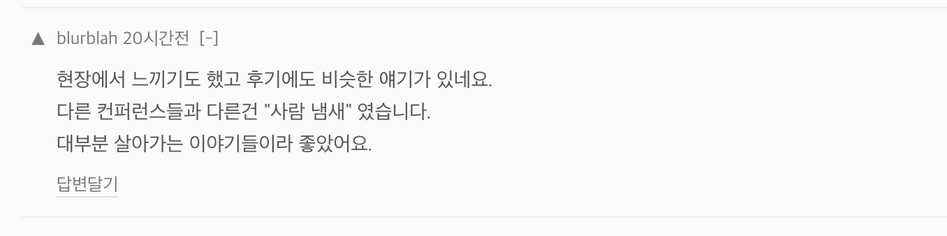 최근에 많은 테크기업들이 인프콘, 우아콘 등 대형 테크 밋업을 주최하고 있지만, 이런 소규모의 조직이나 개인들이 개발 경험을 공유할 수 있는 자리는 많이 없는것 같습니다. 그런 의미에서 Geek News의 밋업은 더욱 뜻깊었던것 같네요. 후기들을 살펴보니 사람냄새(?) 난다는 평이 많았습니다. 실제로 50대 개발자, 개발자 대표 창업기 등을 접하며 앞으로의 미래도 한번 생각해보게 되었구요.