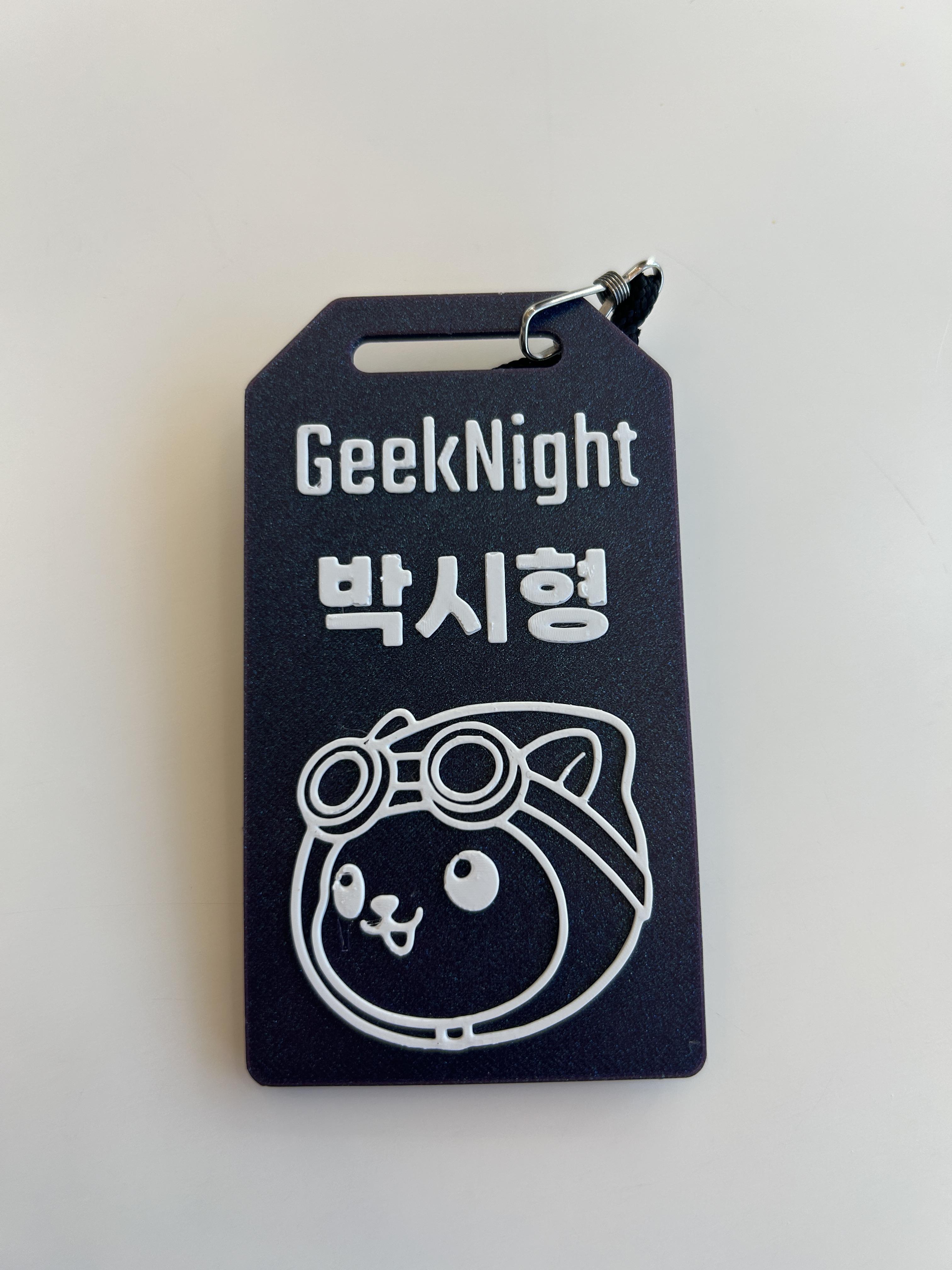 참석 굿즈로는 Geek Night 스티커와 행사 아이덴티티가 담겨져있는 키캡을 받았는데, 특히 키캡이 누르는 재미가 있네요. 이름과 캐릭터가 들어간 목걸이 굿즈도 제공받았는데 아마 발표 연사자들에게만 제공하는듯 합니다. 여행갈 때 캐리어에 부착하면 수화물 찾을때 편하다고 하네요 !?