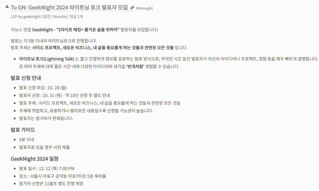 GeekNight 2024 긱뉴스 밋업 후기 | GeekNews